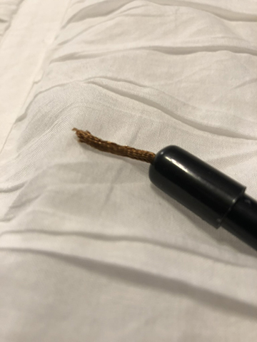I put the toy down and turned my back for a minute, when I turned back, I found the stick with nothing but a stub of string.   The toy that had been attached to the string was also loose seeming to have been chewed off from the string.  Missing was the string itself.   I searched everywhere.  I could not find it.