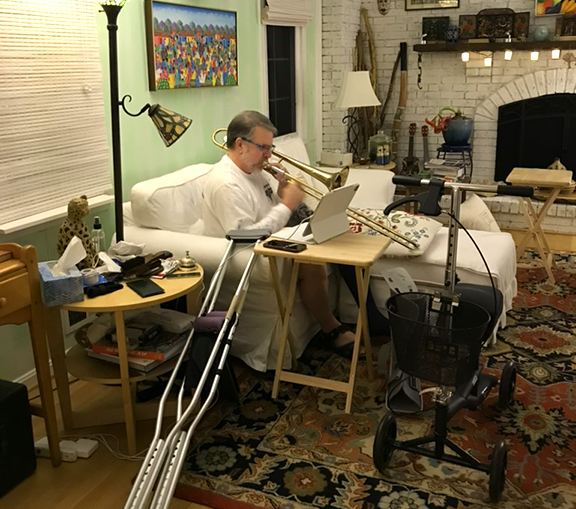 The most important part of this band is the horn section.  Tremendous horns.  Here is Matt playing along with Fat Freddy on his Trombone.