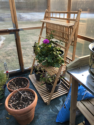 Over the summer it sat empty since all of my plants sit on the patio. But usually in winter, I bring the plants indoors and try to find places near the windows. It gets pretty tight. I also now have the added fun of a cat that likes to eat plants. This year, instead of bringing them into the house, I am keeping them in their own warm and cozy house with a heater. Outside it is 20 degrees inside it is a nice 40 degrees. Just enough warmth to keep them happy. Added bonus – JoJo can’t eat them.